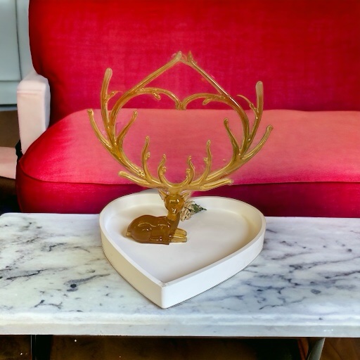 Handmade resin heart jewellery dish. Available in all different colours with or without the stag, just note your requirements when ordering.