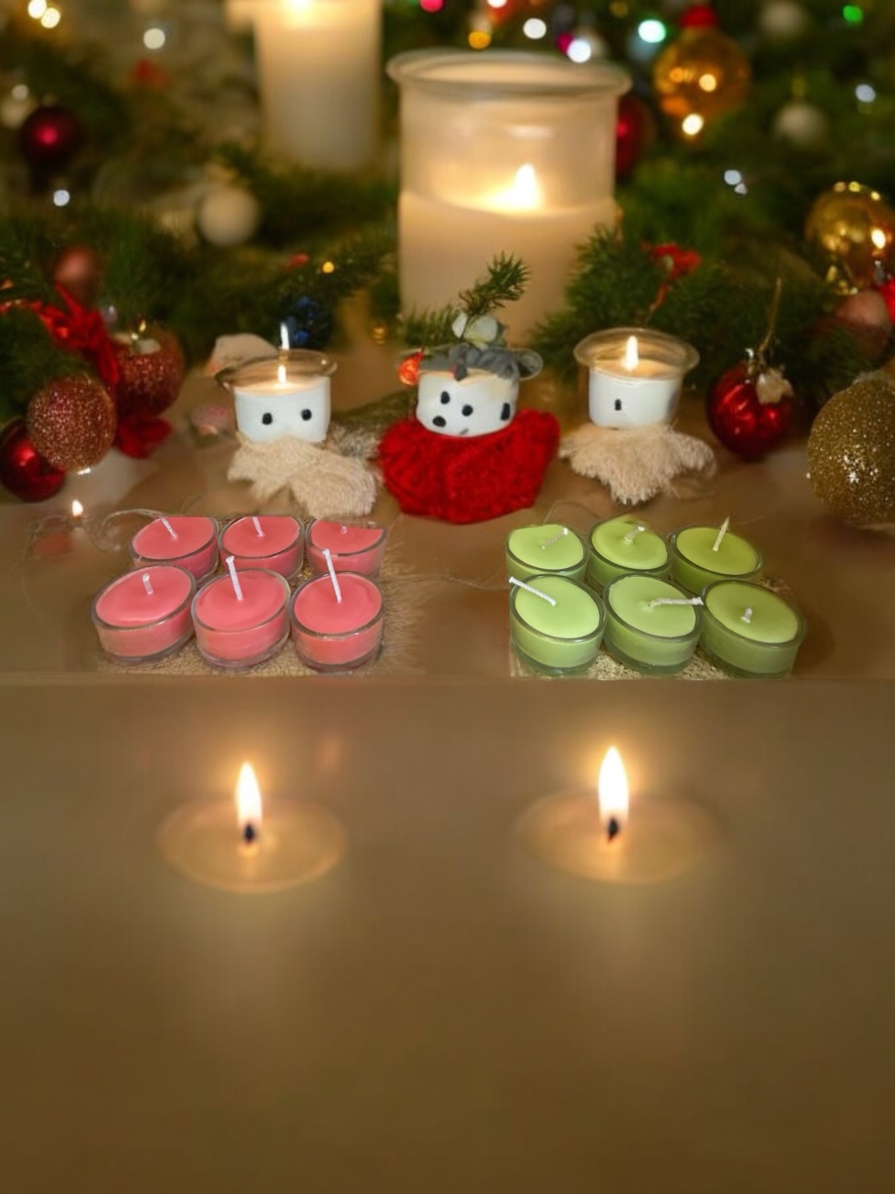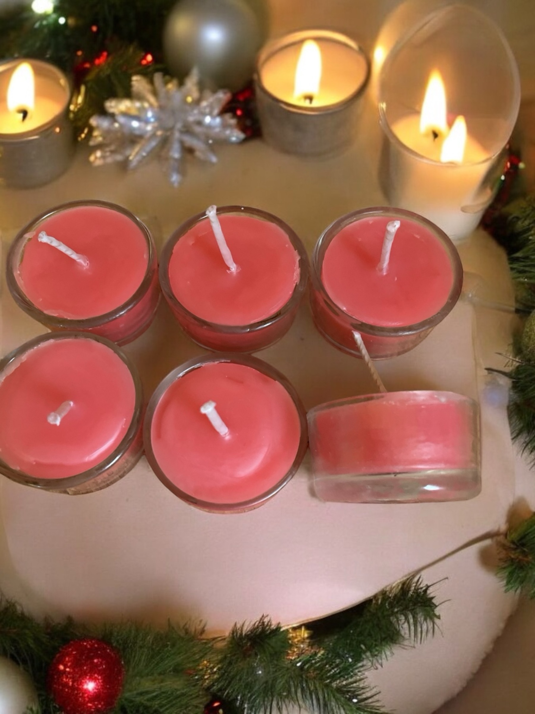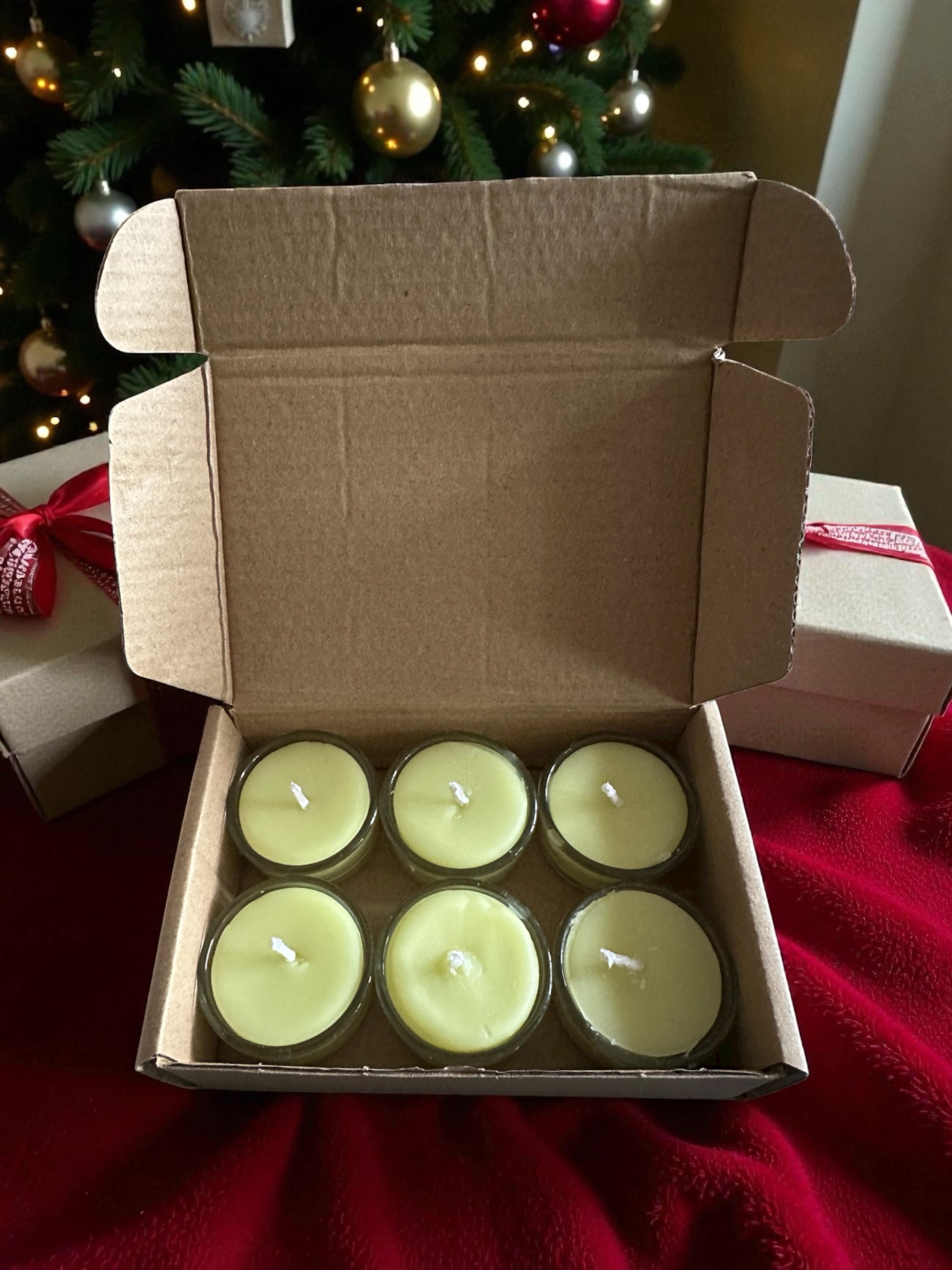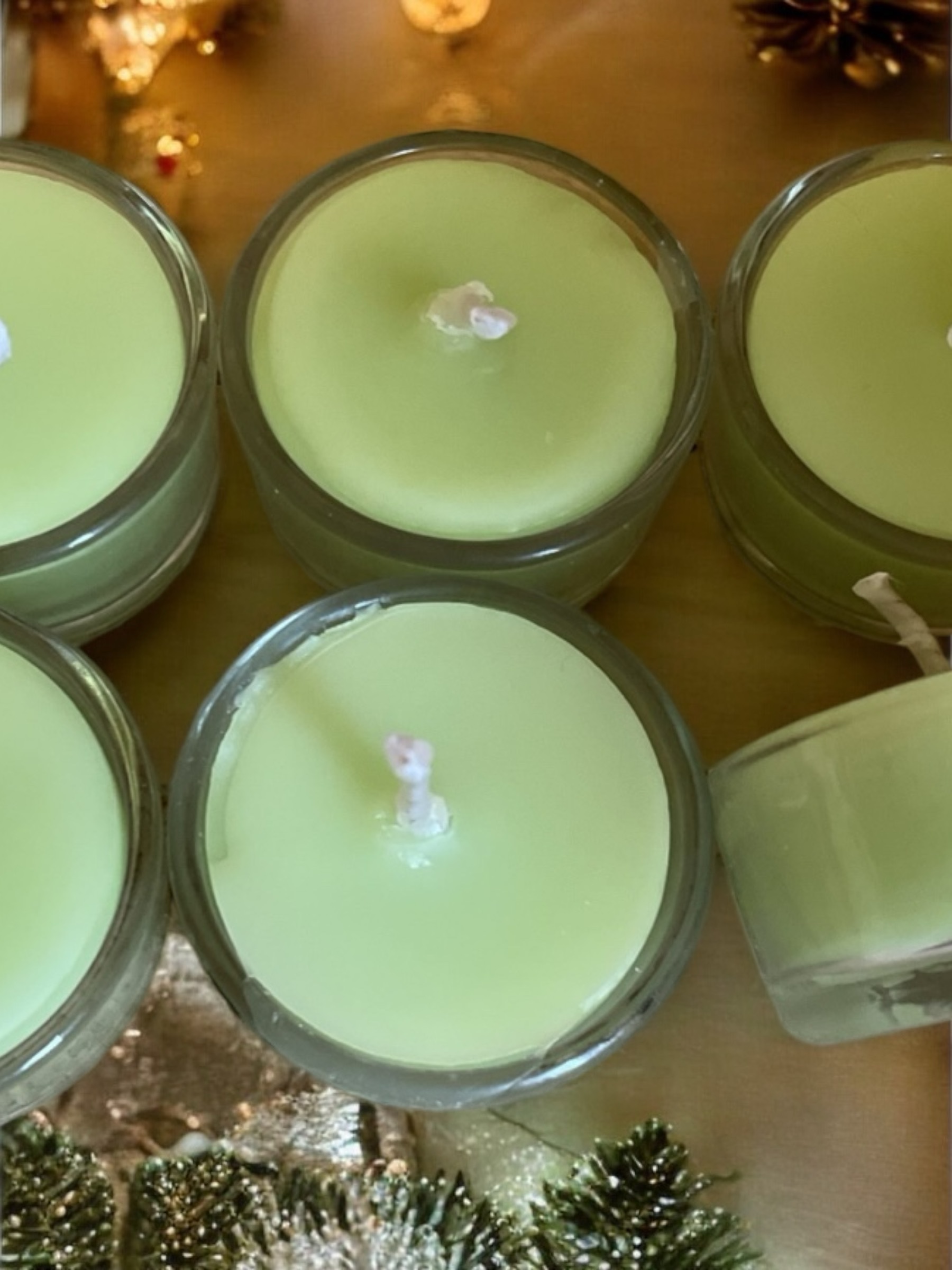 Handmade 100% Beeswax Tea Lights with Christmas tree fragrance.