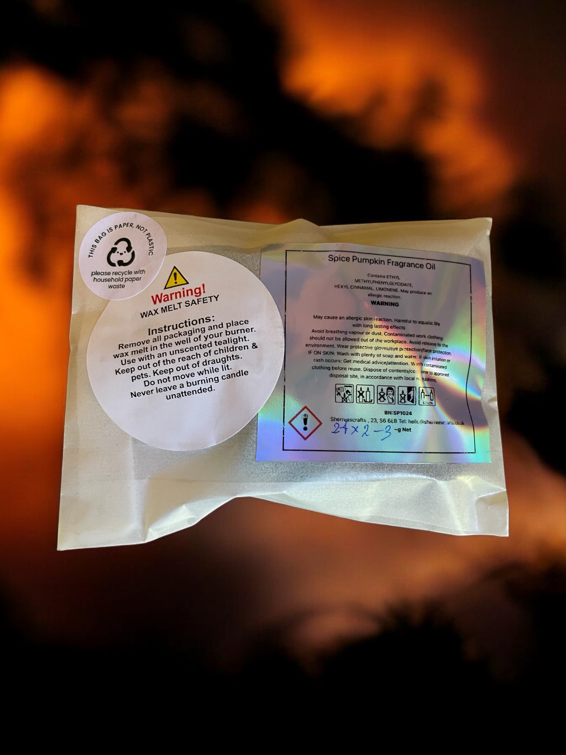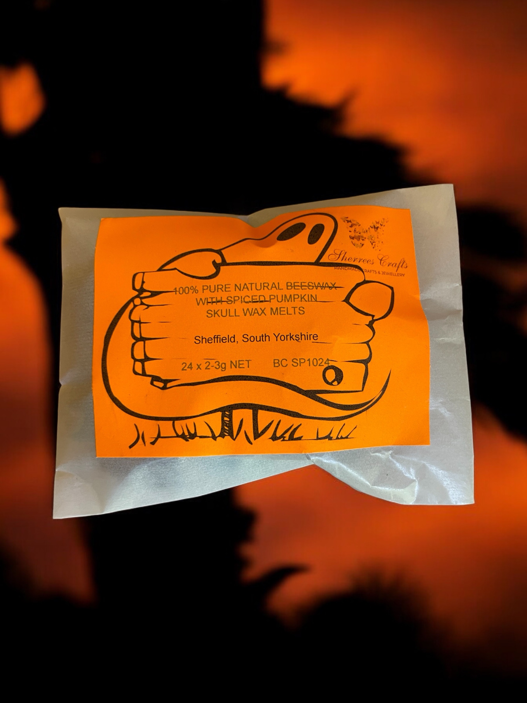 Skull Wax melts (24 in each bag) scented with Spiced Pumpkin or Berry Bewitching Brew, also available in a selection of colours. They will come in random colours unless a specific colour is requested.