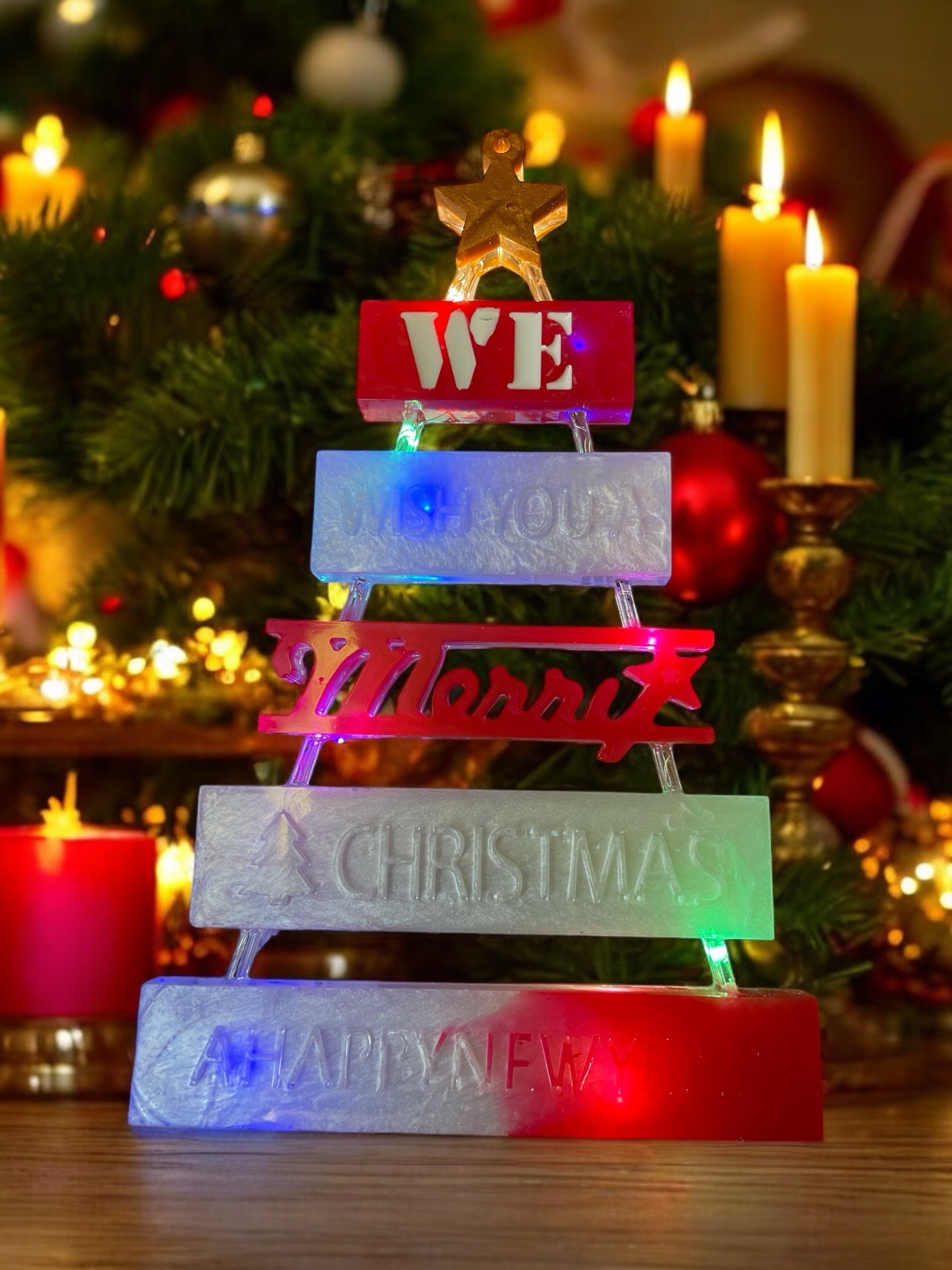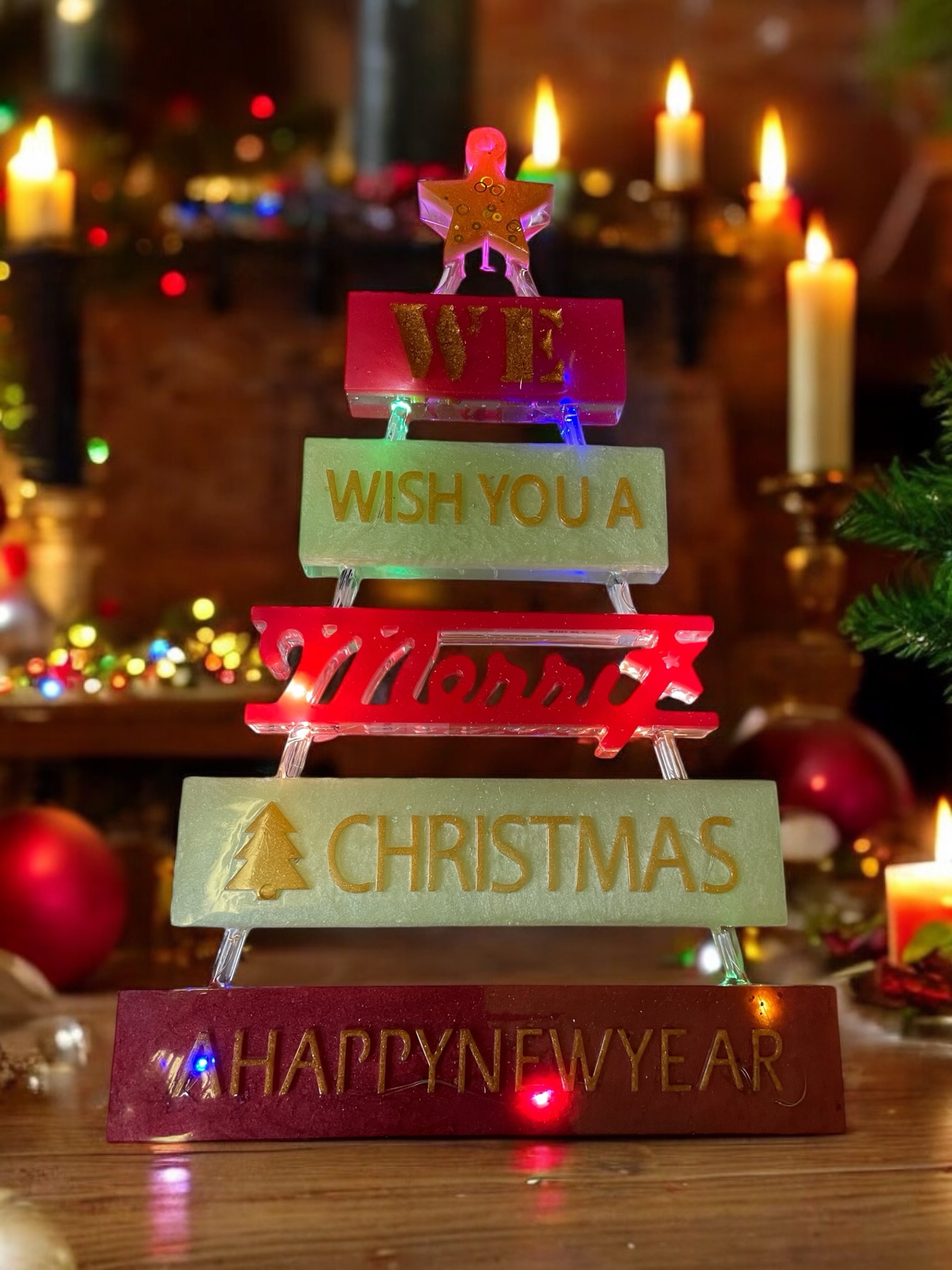 Light up Merry Christmas sign which can be hung on the wall. The lights are multi coloured and have 3 different functions. It is available in all different colours, you just need to message me first with your requirements to confirm it’s possible.