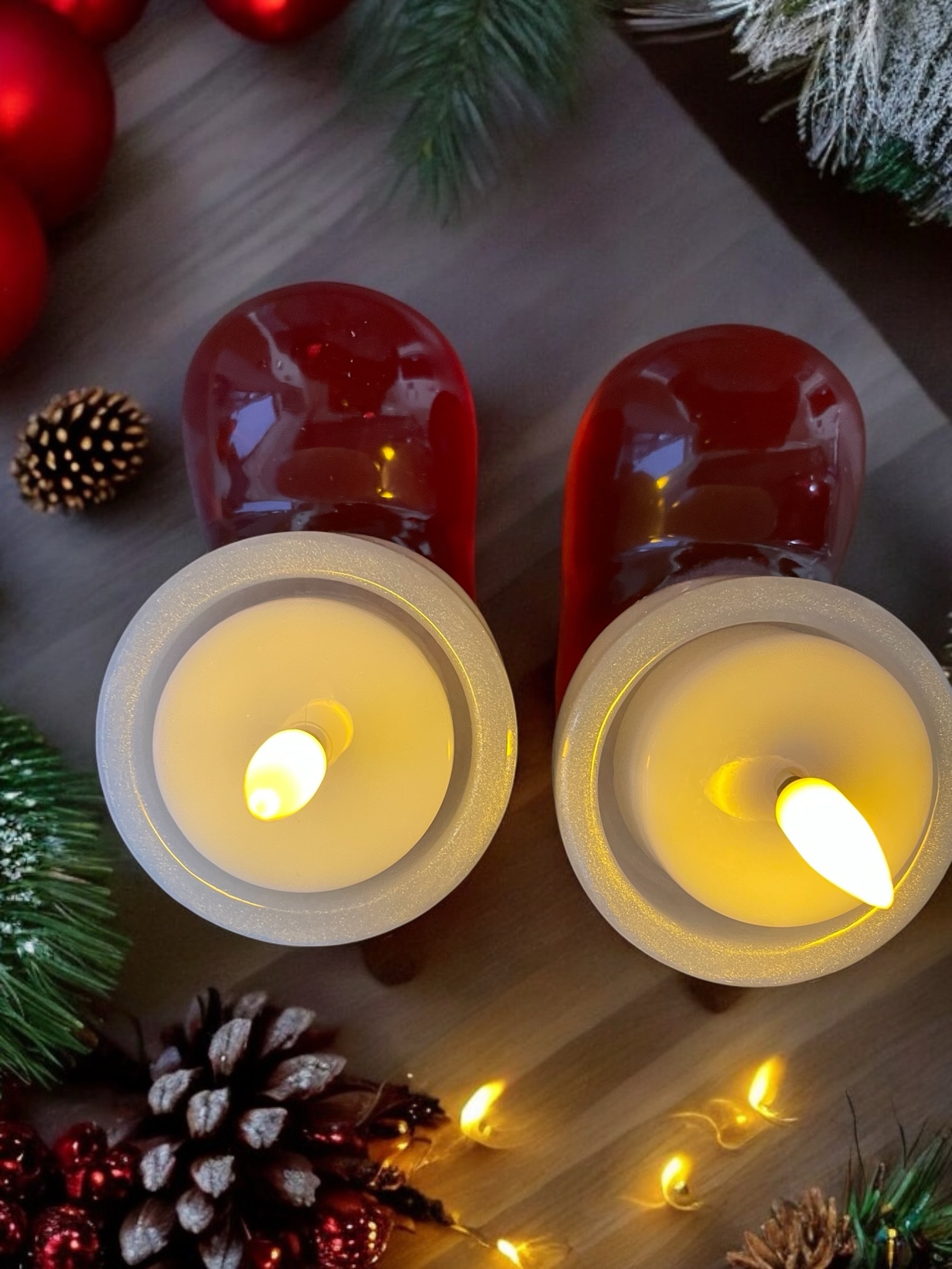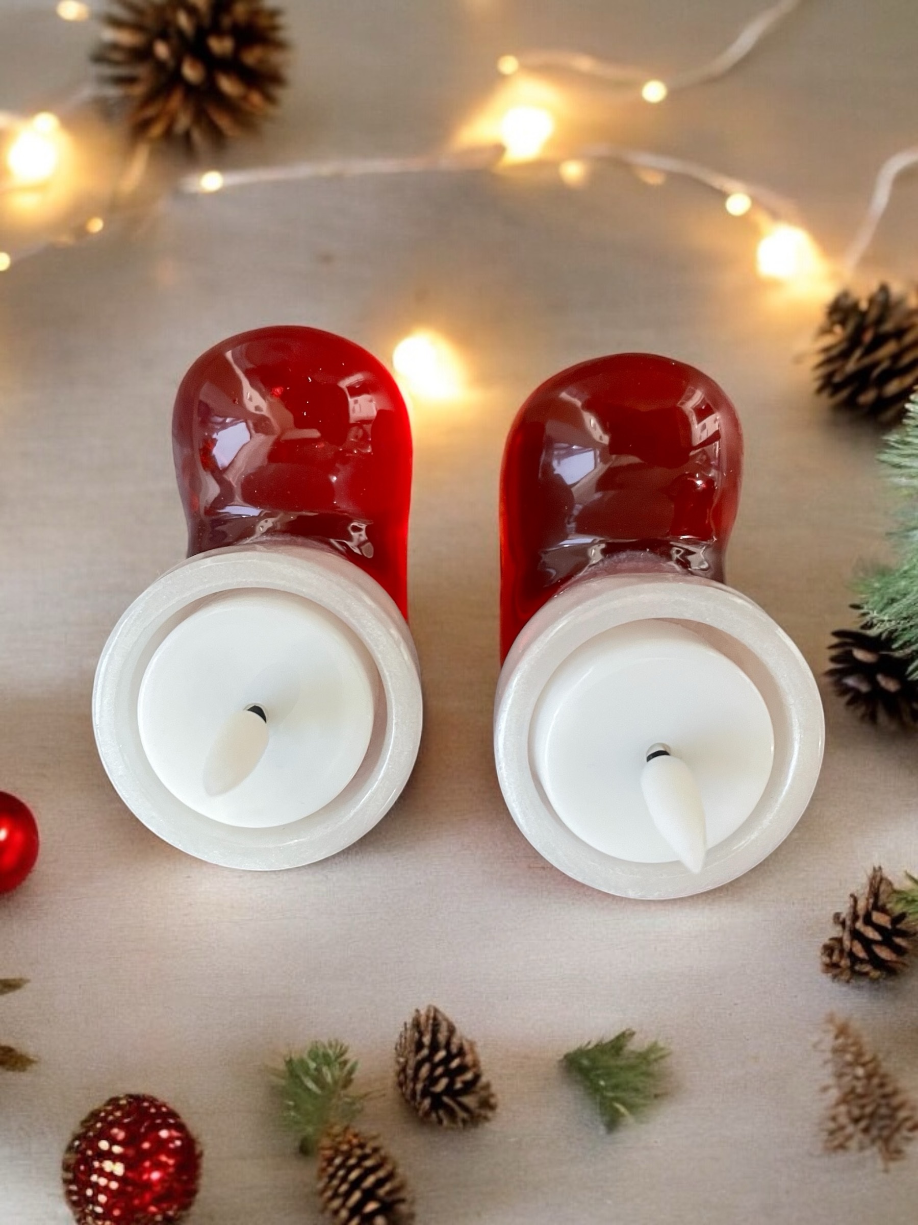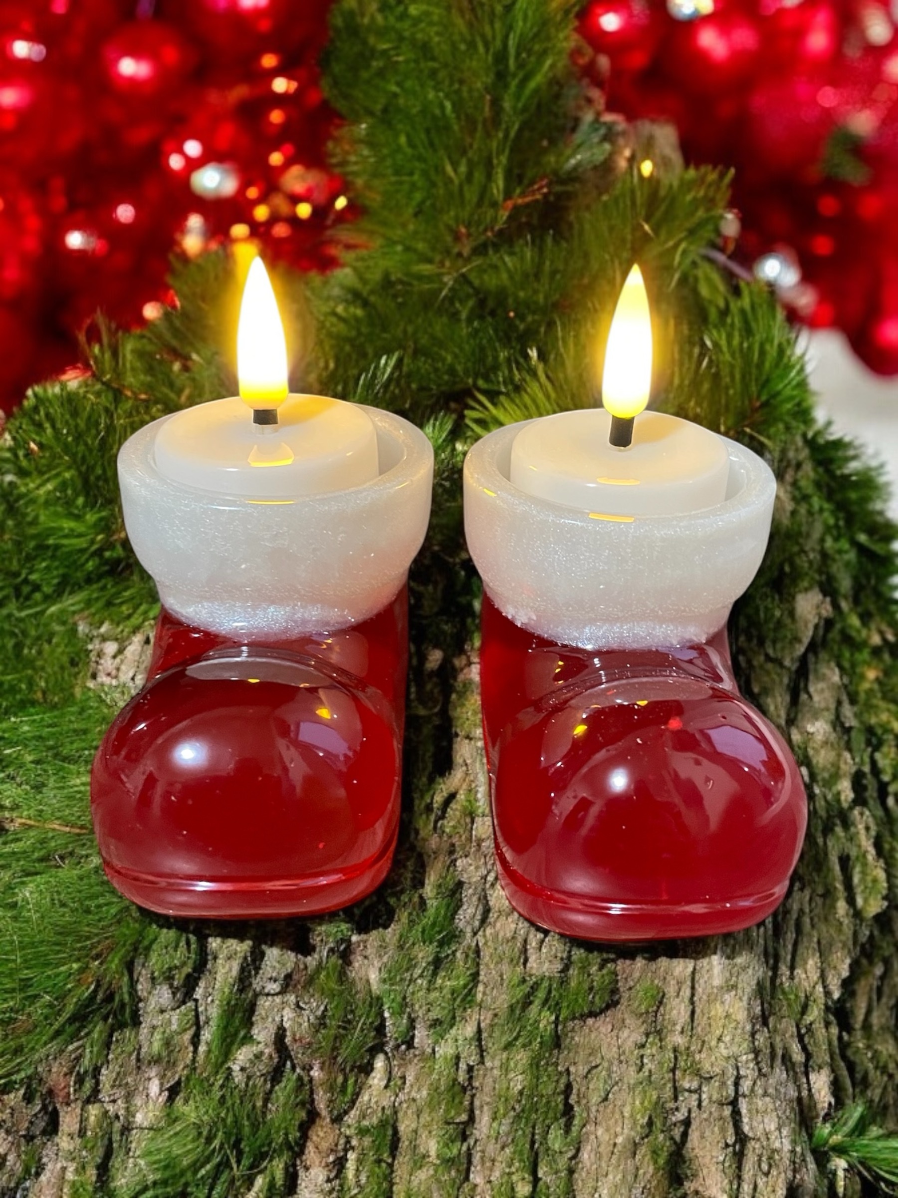Handmade resin santa boots tea light holder. It is also available in all different colours, you just need to message me first with your requirements to confirm it’s possible.
