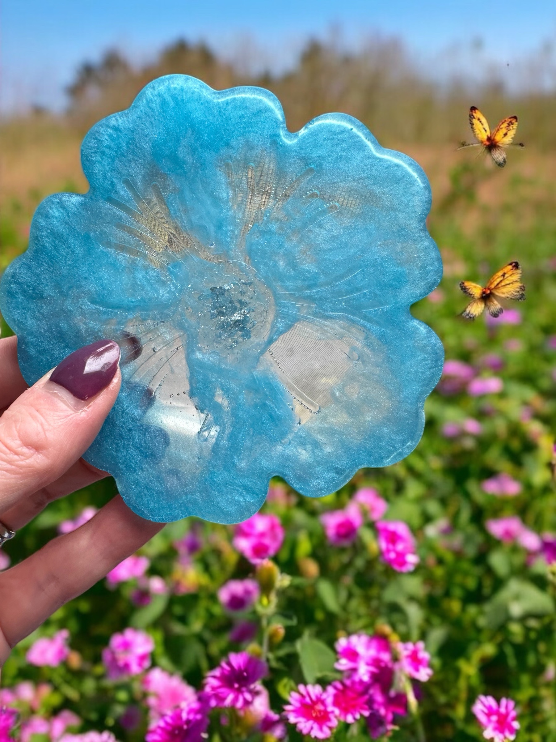 If you want to have 2 or 4 coasters you can mix and match between hearts and flowers just put the info in notes to let me know your requirements.