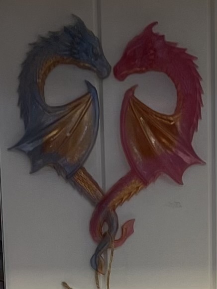 Handmade Resin dragon wall arts. Perfect gift for valentines day, Halloween or a dragon mad partner/friend or relative. Can be easily hung from a wall.