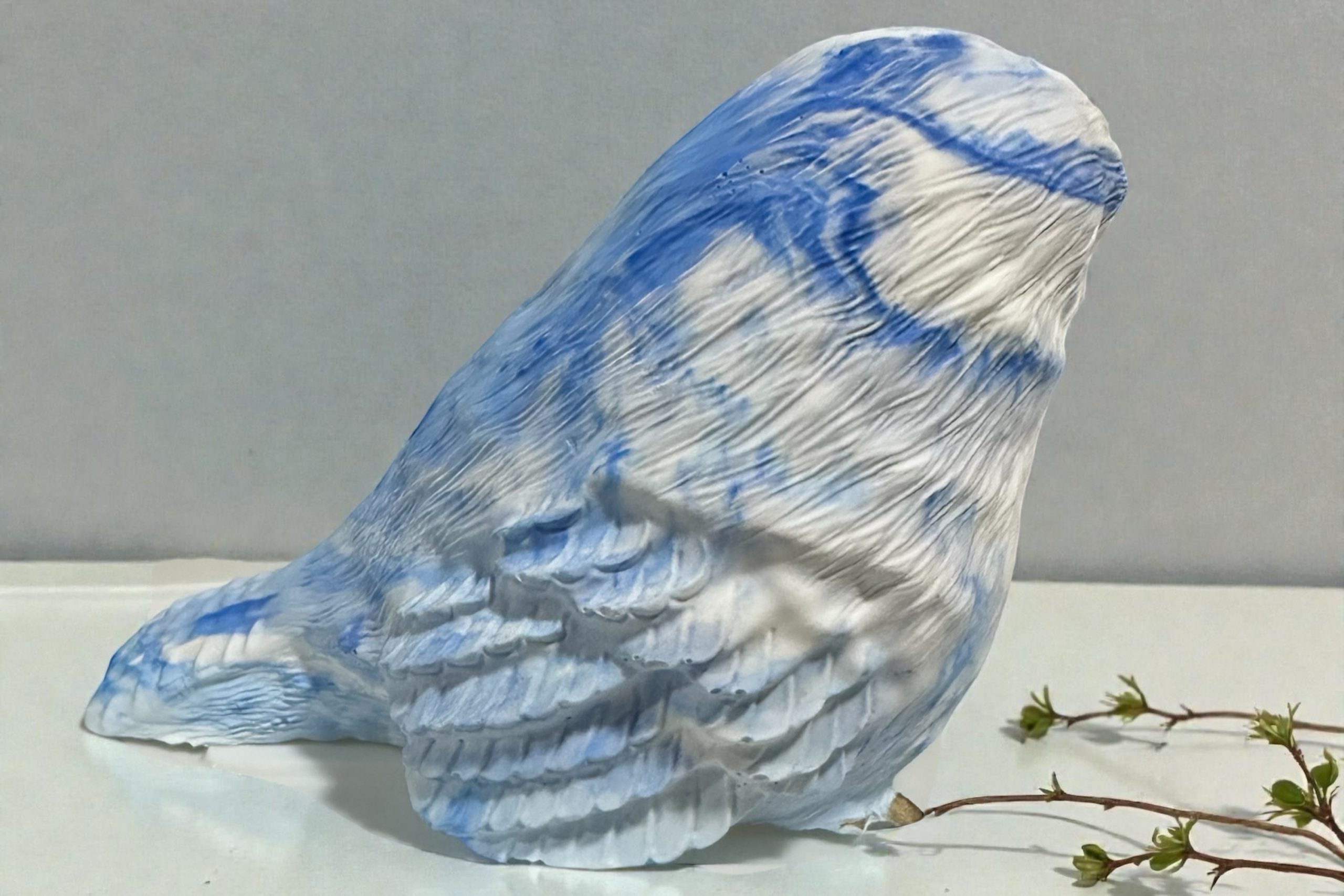 The bird is handmade with marbelux and available with or without added coloured features. The bird is also available in different colours just note your requirements when ordering.