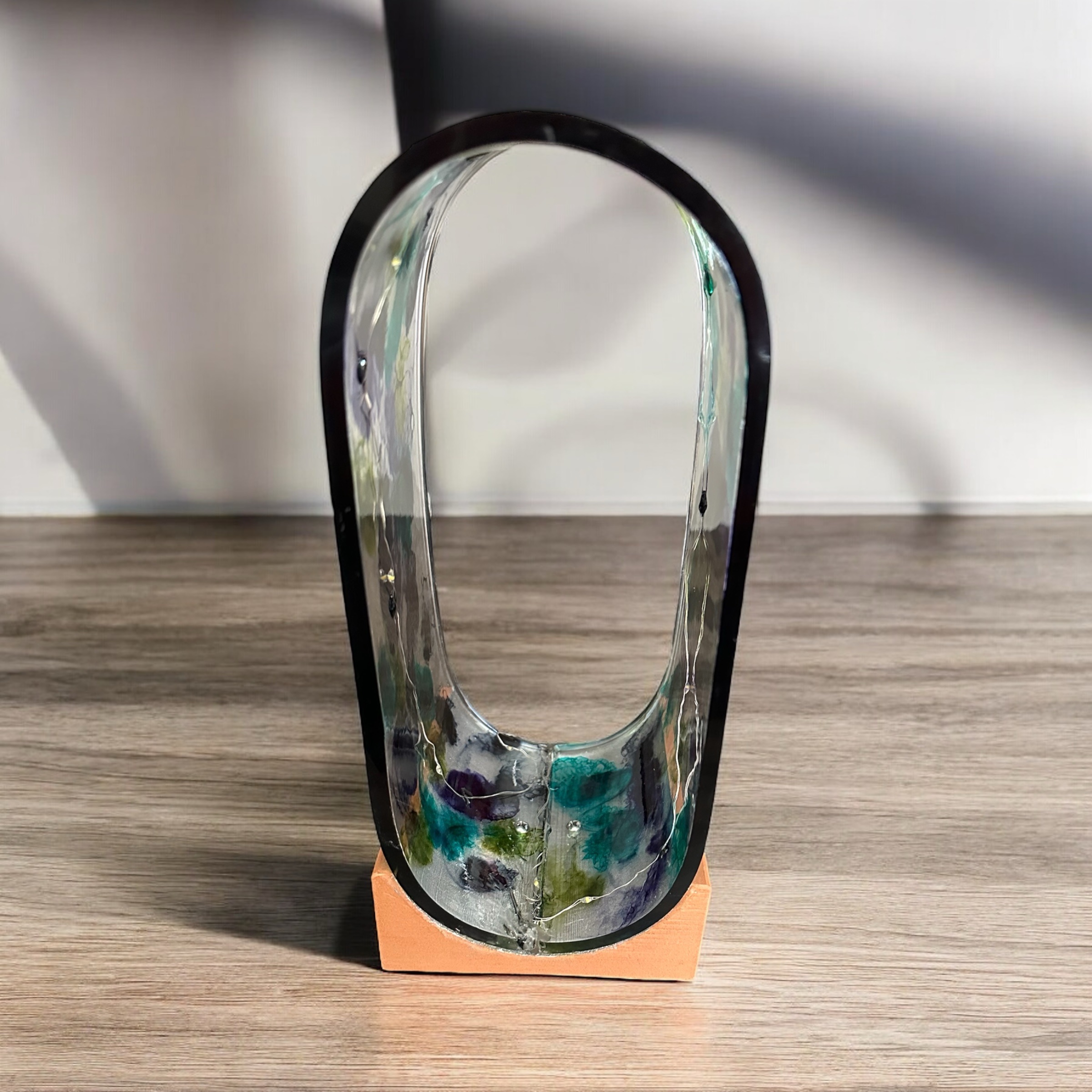 Handmade resin lamp with 3D printed base containing yellow pear wood is available in different colours just note your requirements when ordering. Also available with multi coloured lights if preferred.
