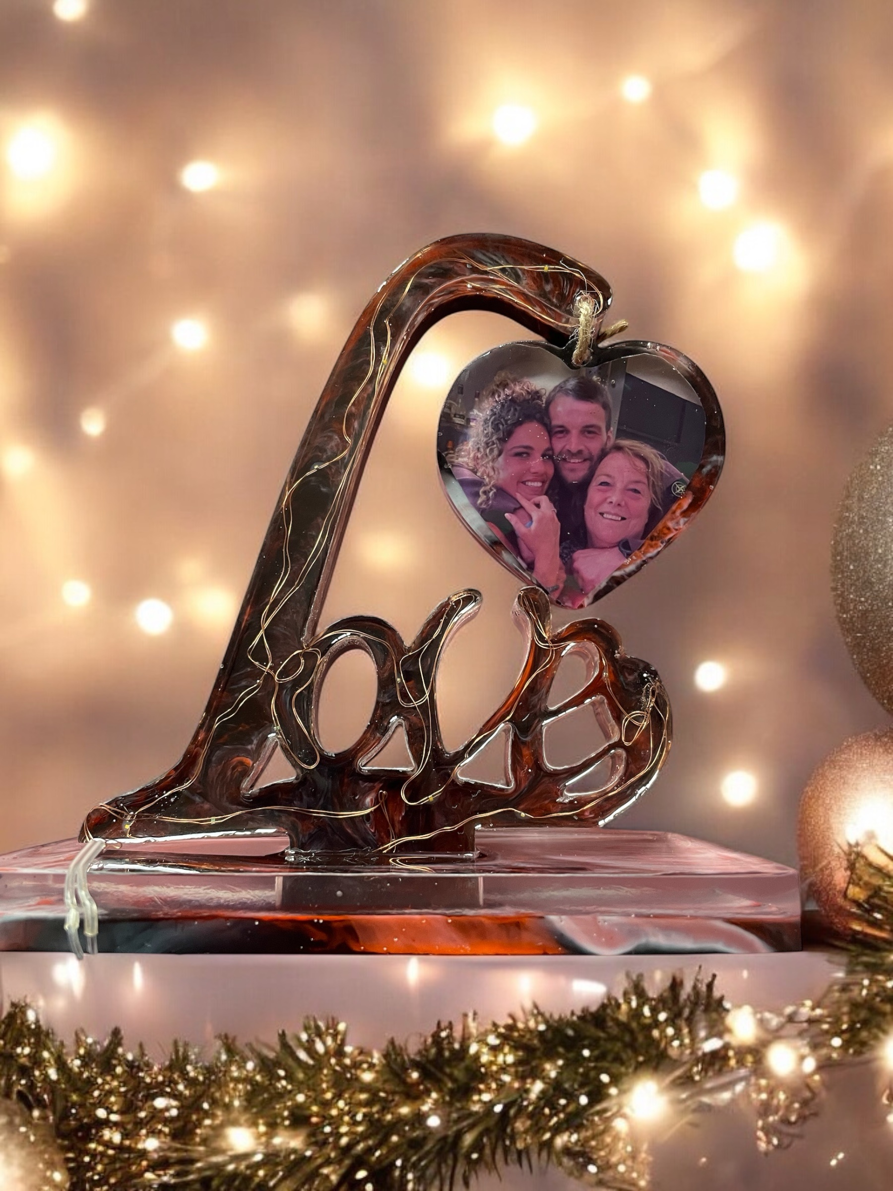 Handmade Resin heart shaped hanging picture frame and a ‘Love’ picture frame.