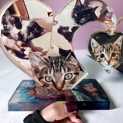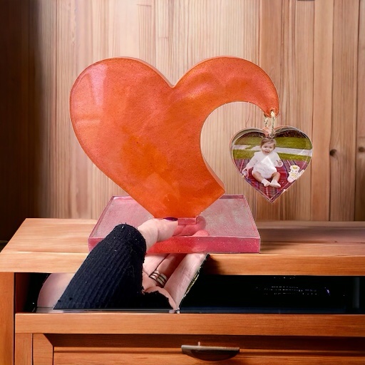 Sherree created a stunning resin photoframe for me – I chose the large heart with the smaller heart cut out. All I had to do was choose my photos. I wanted a collage effect, and Sherree arranged them beautifully. She was very responsive when I emailed some questions. The stand for the frame is really clever – the point of the heart just slots into it and it’s very sturdy. The frame came in a really lovely box and was securely packaged. So pleased with the final product! I’ll be ordering more for family christmas gifts.